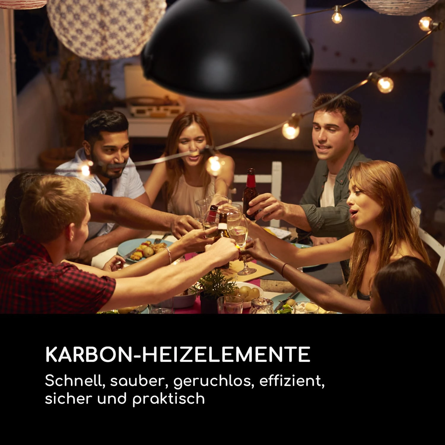 Feiern wie im alten Blackpool: Die Zeit mit Freunden genießen oder einen romantischen Abend bei Wein und Kerzenschein auf der Terrasse verbringen, bis die Sterne am Himmel funkeln: Dank des blumfeldt Blackpool Heat Infrarot-Deckenheizstrahlers wird dir dabei bis zum Schluss kuschlig warm sein.