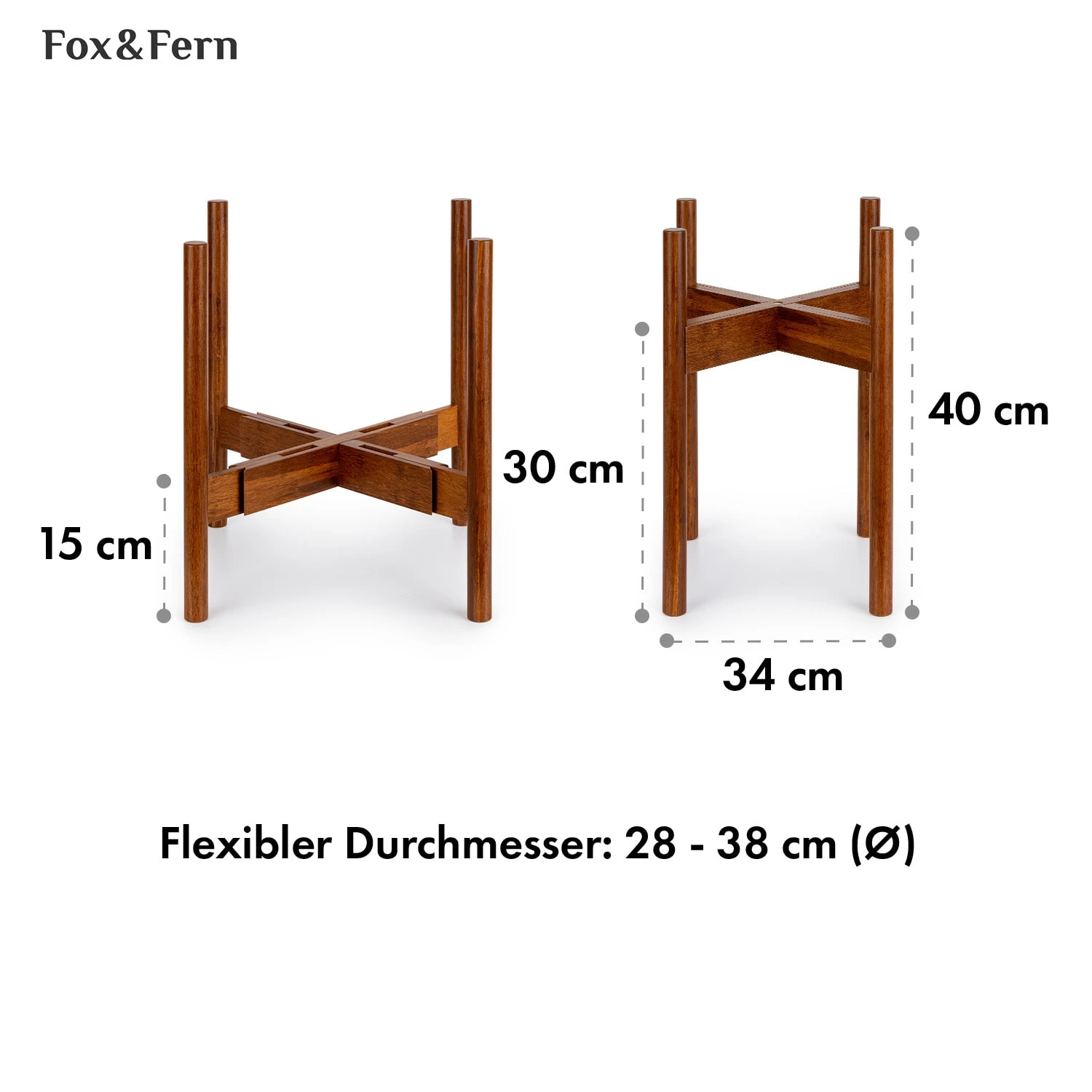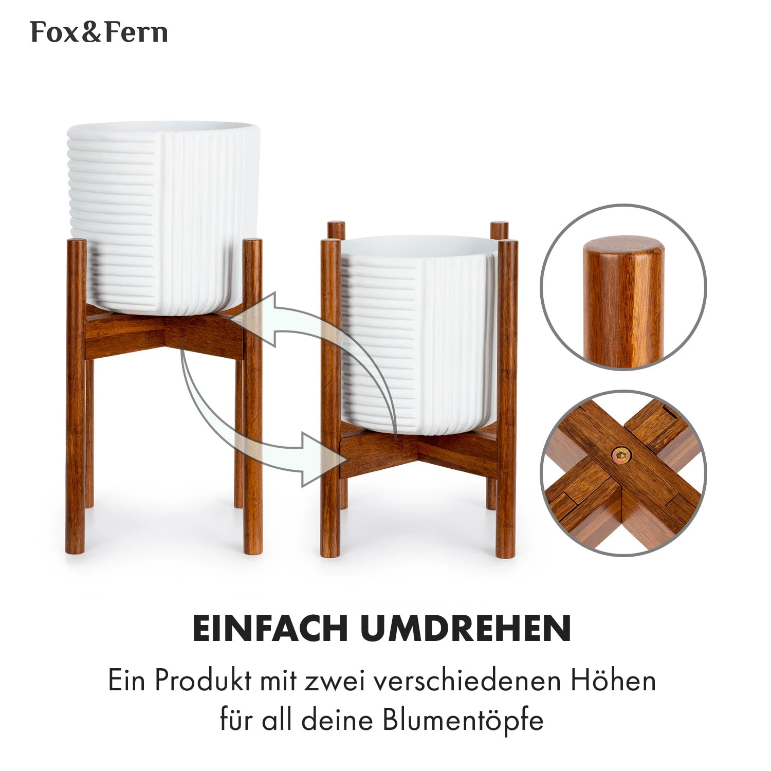 Lass mit dem Deventer Pflanzenhalter von Fox & Fern by blumfeldt mehr Natur bei dir einziehen: Die Blumenständer sind aus nachhaltigem Bambus gefertigt und bringen frische und gute Stimmung in dein Leben. Stelle an deinem erweiterbaren Pflanzendständer einfach den gewünschten Durchmesser deines Blumentopfes zwischen 20,3 und 30,5 cm ein, um deine Lieblingspflanzen bequem darauf zu platzieren. Durch simples Umdrehen des Blumenständers kannst du deine Pflanzenfreunde sogar auf zwei unterschiedlichen Höhen präsentieren. Kombiniere nach Lust und Laune und erschaffe deine private Wohlfühloase bei dir Zuhause. Das praktische Steck-Design ermöglicht zudem eine schnelle und einfache Montage.
