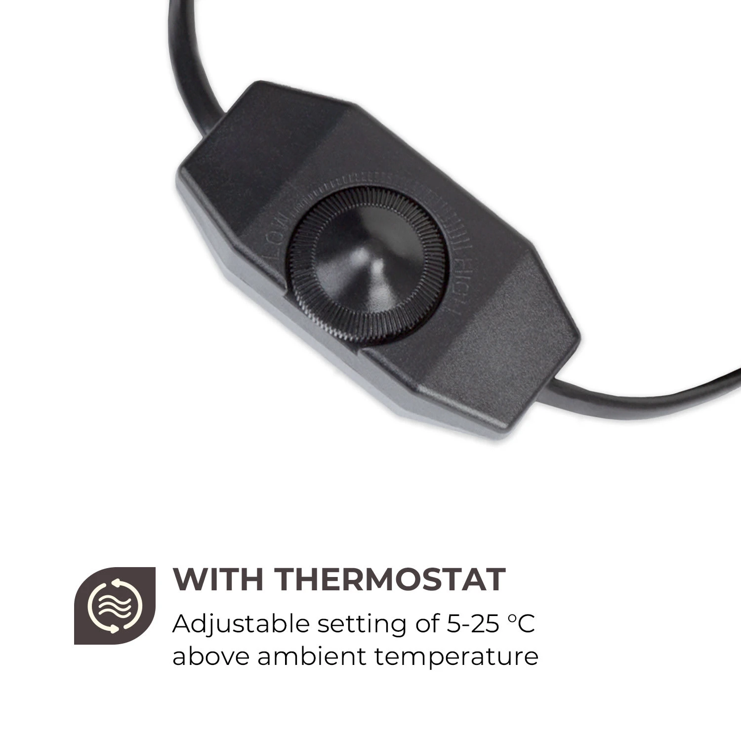 Das Wärmekabel lässt sich mit einer Länge von 20 Metern leicht um Baumstämme oder Blumentöpfe wickeln oder sogar unter die Erde verlegen. Beständig wärmt das Greenwire Select mit 6 W/m Heizleistung alle Arten von Pflanzen und gewährleistet so eine optimale Überwinterung. Das Thermostat lässt sich einfach per stufenlosem Regler von 5-25 °C über der Umgebungstemperatur einstellen.