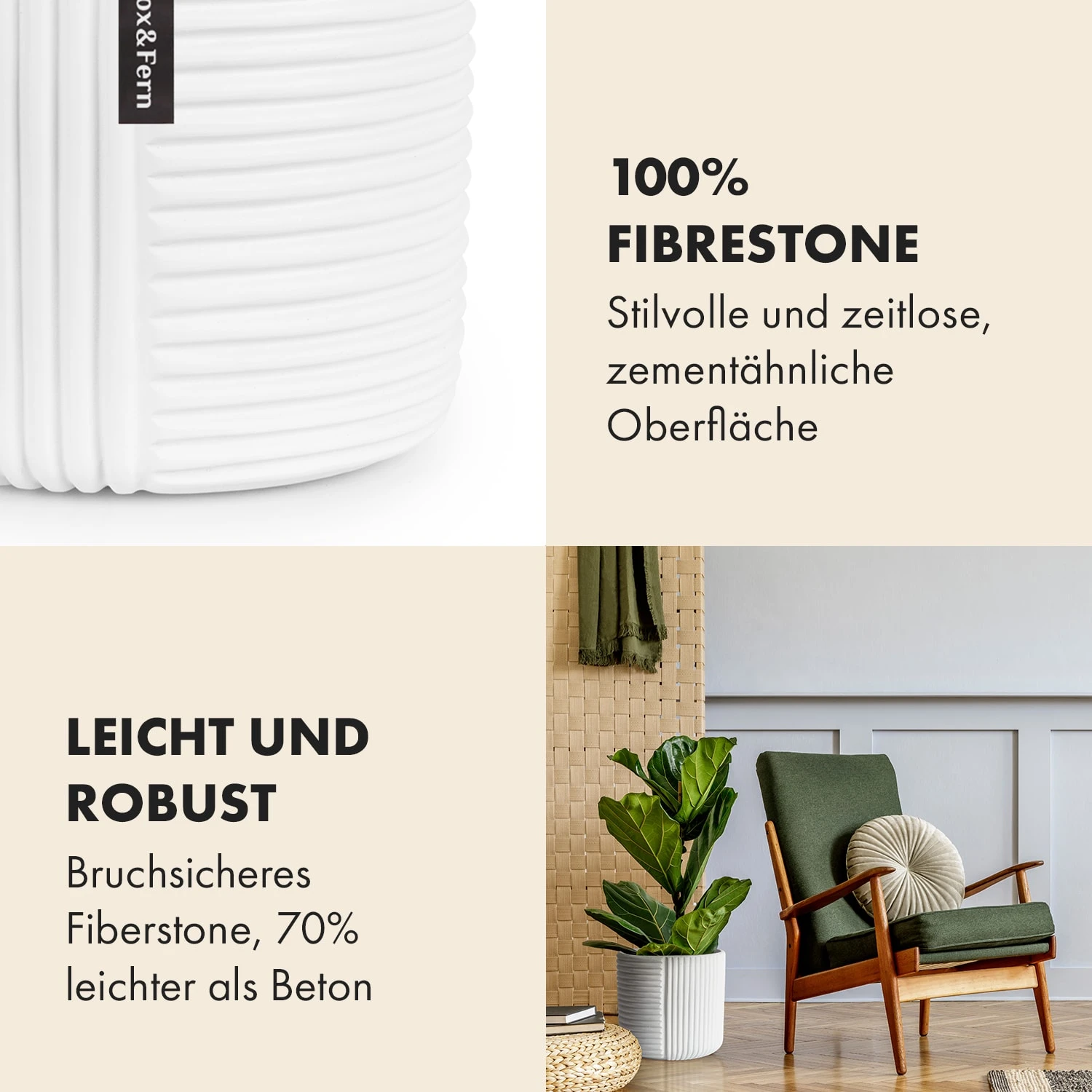 Im Fox & Fern by blumfeldt Hasselt Blumentopf aus Polystone finden deine Pflanzen ein neues, stylishes Zuhause. Polystone ist eine Kombination aus Stein, Zement und Fiberglas, die besonders robust und hart, dabei allerdings um ein Vielfaches leichter als Naturstein ist. Zudem ist es sehr pflanzenfreundlich und ermöglicht dir, deine grünen Freunde direkt in den Hasselt Blumentopf einzupflanzen. Auch für eine angenehme Feuchtigkeit ist mit dem Hasselt gesorgt, denn er verfügt am Boden über ein Wasserablaufloch. Dieses kannst du mit dem entsprechenden Stopfen beliebig öffnen und schließen. So ausgestattet fühlen sich deine Pflänzchen – ob drinnen oder draußen – rundherum wohl und gedeihen prächtig. Durch die Linien-Struktur ergibt sich ein Muster in 3D-Optik, das alle Blicke auf sich zieht.