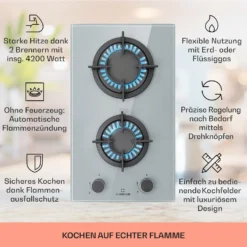 Firetale Gaskochfeld 2-flammig Aluminium-Brenner Erdgas/Propangas Inkl. Schlauch Und Druckminderer