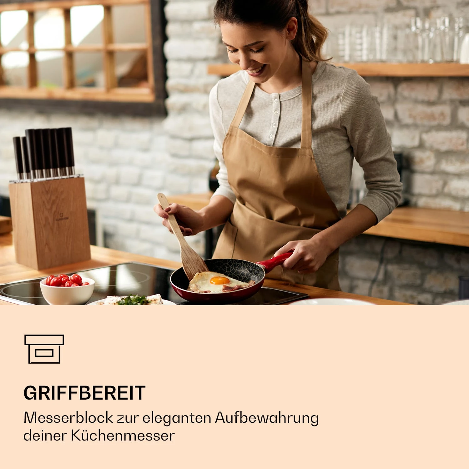 Kitano XL 13tlg. Messer-Set Mit Block 12 Messer Stahl Edler Holzblock