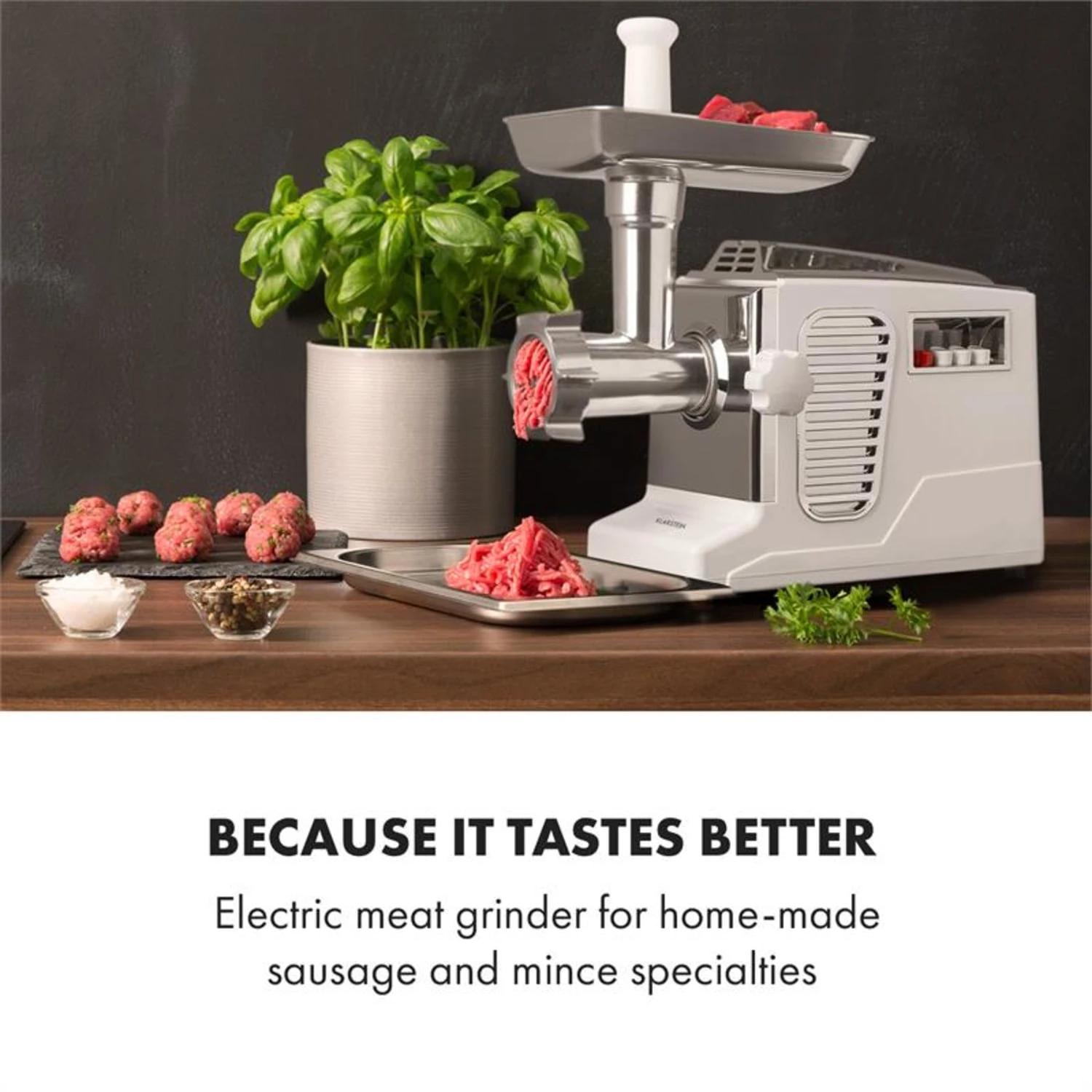 Hier geht es nicht nur um die Wurst: Der Klarstein Kraftprotz Fleischwolf zerkleinert Fleisch zu leckeren Hack- und Wurstspezialitäten, wie du es dir wünschst.