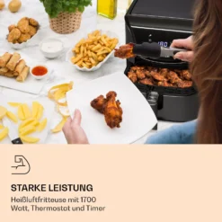 AeroVital Easy Touch Heißluftfritteuse 1700W 14l Timer 16 Programme Schwarz