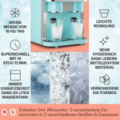 Eiszeit Eiswürfelmaschine Edelstahl 3 Eiswürfelgrößen Silber