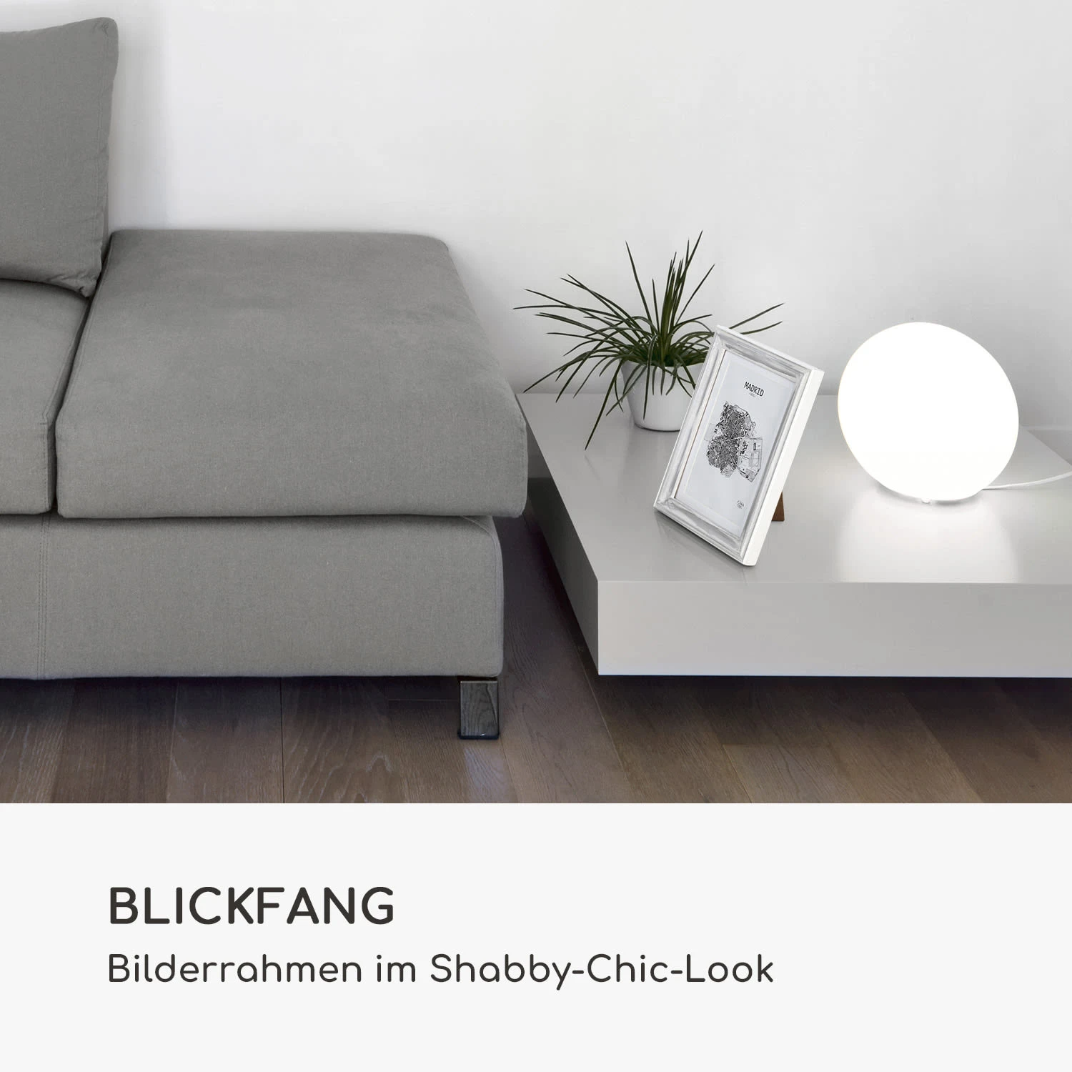 Jeder Rahmen ist ein Unikat: Die Lancaster Bilderrahmen von Casa Chic by blumfeldt aus edlem Pinienholz im Shabby-Chic-Look sind handgearbeitet und bringt deine Fotos und Bilder sowohl im Hoch- als auch im Querformat ideal zur Geltung. Bleibe flexibel und gestalte wunderschöne Wandcollagen oder arrangiere deine Lieblingsfotos auf dem Sideboard oder im Regal. Das mitgelieferte Passepartout überlässt dir die Wahl des passenden Bildausschnitts. Das gleichmäßig breite Rahmenprofil und die Frontscheibe aus Echtglas sorgen für Eleganz und besten Schutz.