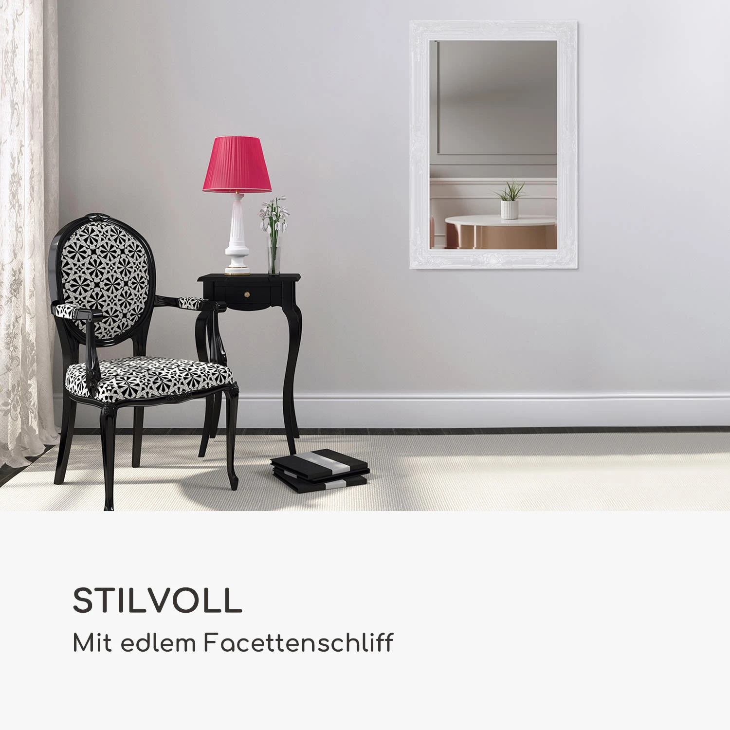 Der Manchester Wandspiegel von Casa Chic by blumfeldt mit Massivholzrahmen ist eine moderne Variante des traditionellen Landhausstil-Spiegels, der jedem Raum eine besondere Eleganz verleiht. Dabei macht er nicht nur im Hochformat, sondern auch im Querformat jederzeit eine gute Figur. Der Spiegel mit Facettenschliff und Abmessungen von 90 x 60 cm ist besonders zur Verwendung in Wohnzimmer, Badezimmer, Schlafzimmer oder auch im Flur geeignet.