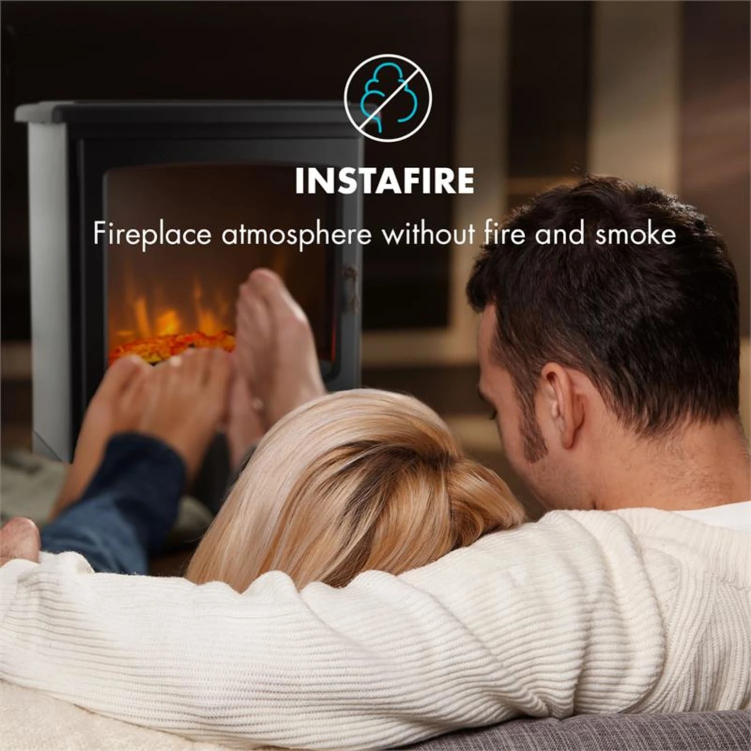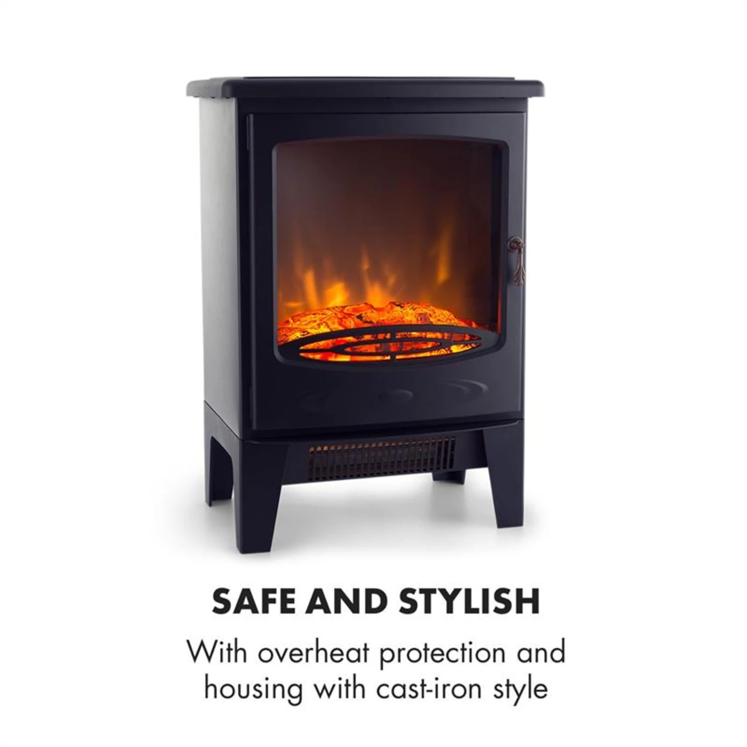 Der Elektrokamin Meran von Klarstein zaubert realistische Flammenillusionen in jedes Zimmer. Das sanfte Licht ahmt täuschend echt Flammen und glimmende Holzscheite nach und verbreitet sofort eine wohlige Atmosphäre. Die Flammen züngeln völlig unabhängig von der integrierten Heizung. Für angenehme Wärme sorgt auf Wunsch die zuschaltbare, 2-stufige Heizfunktion. Über einen Drehregler lässt sich die Wärme per stufenlosem Thermostat anpassen. Die Bedienung des Elektrokamins erfolgt dabei einfach und direkt am Gerät: Die Schalter hierfür sind dezent hinter der Ofentür verborgen. Das einzigartige Design des Meran Kamins im Gusseisen-Stil mit großzügigem Sichtfenster schafft überall eine gemütliche Umgebung.