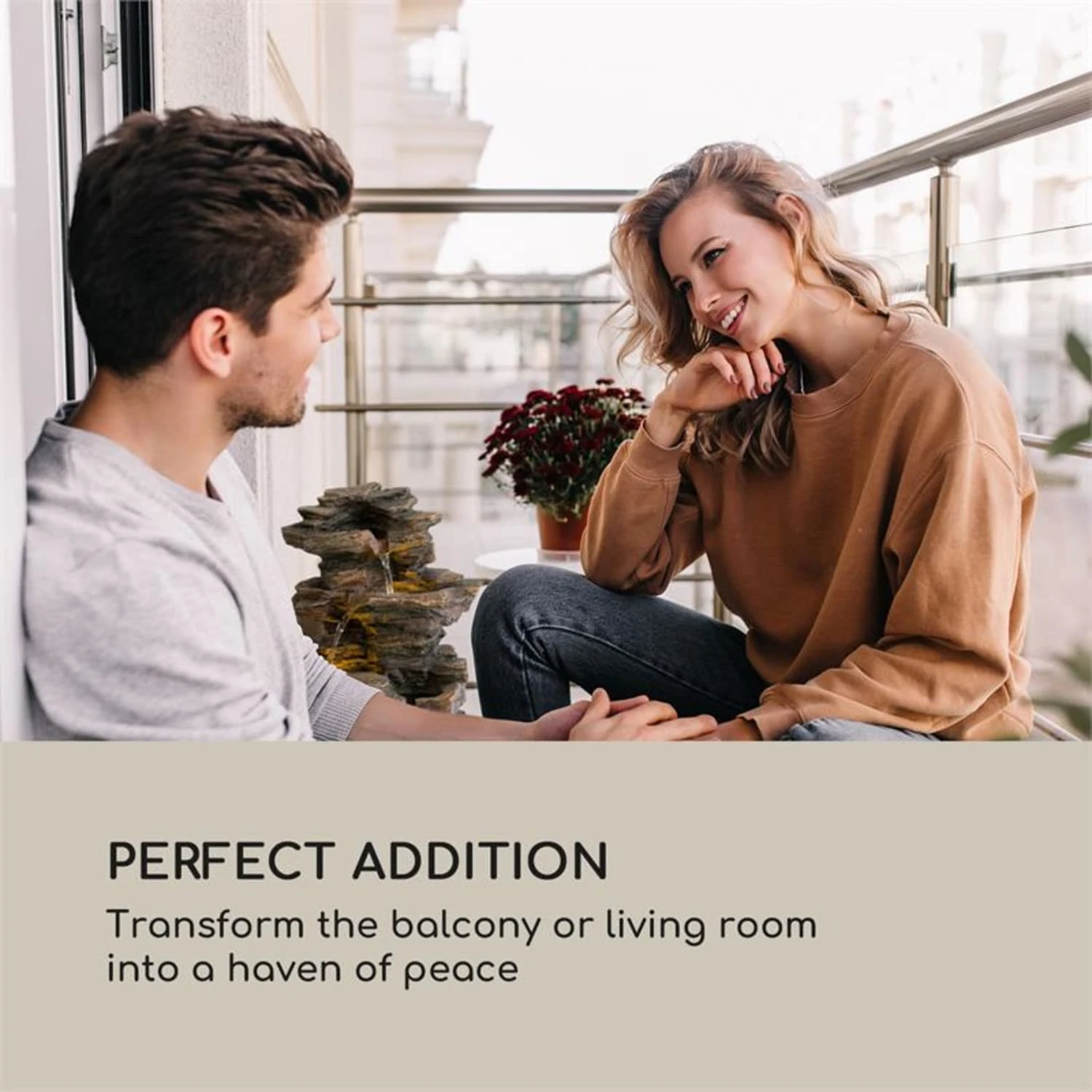 Wild romantisch wie die Küste Siziliens: Der Blumfeldt Messina Solar-Kaskadenbrunnen lässt mit der Kraft der Sonne das Wasser zwischen seinen vier Stufen fließen und hilft die Welt mit seinem funkelnden Wasserspiel zu entschleunigen. Der täuschend echt aussehende Brunnen ist dabei äußerst dekorativ und eine Zierde für jeden Garten, Balkon oder das Wohnzimmer.