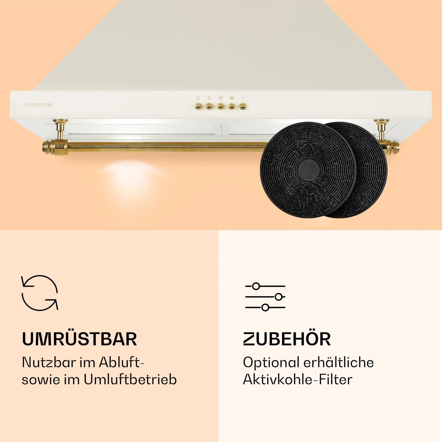 - Umrüstung auf Umluftbetrieb mit zwei Aktivkohle-Filtern möglich