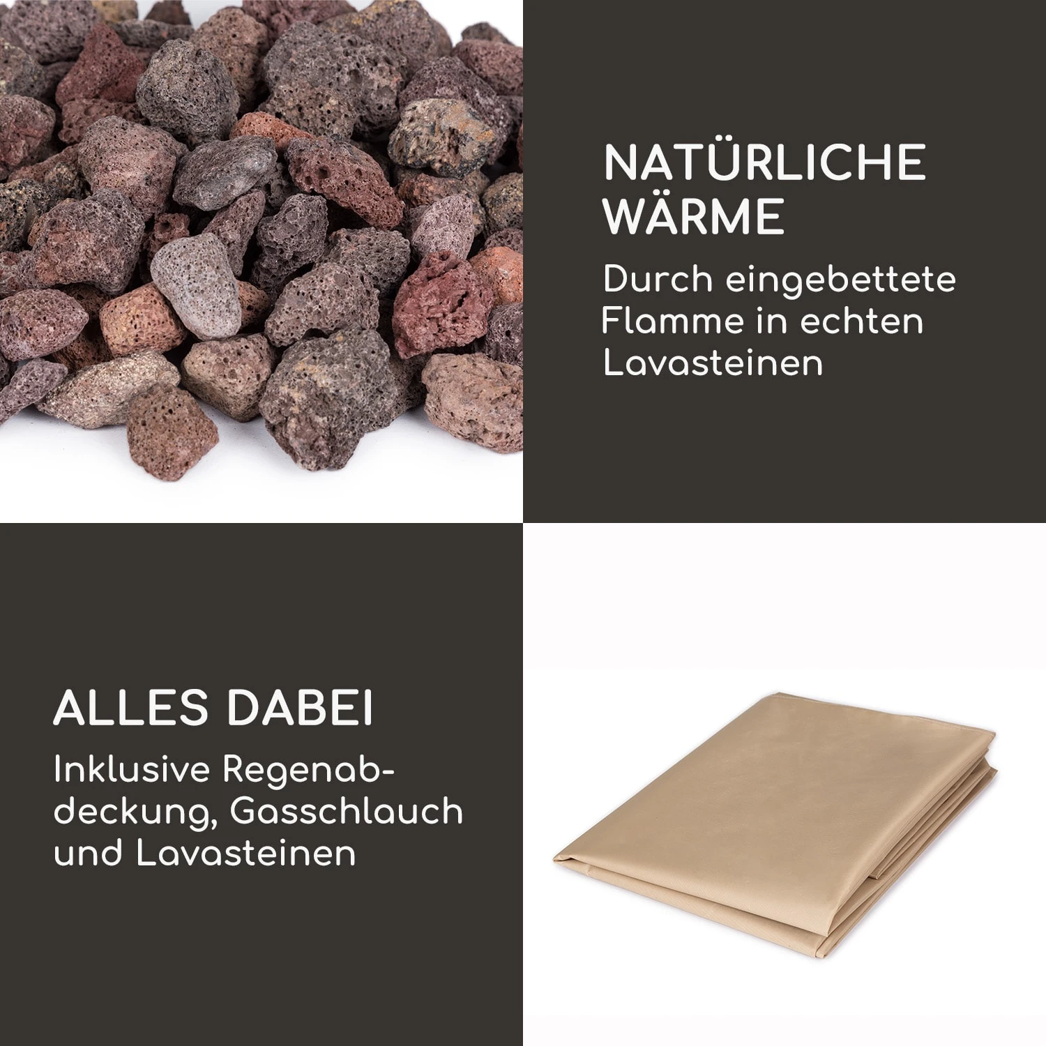 Leistungsstarke Gas-Feuerstelle für Romantik und natürliche Wärme in Outdoor-Oasen: Die blumfeldt Pilos Gas-Feuerstelle verbindet rustikale Schönheit mit komfortabler Funktionalität.
