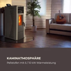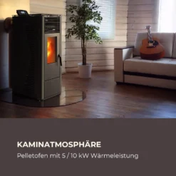 Energiewende Pelletofen 5/10 KW 5 Stufen Timer 18kg 250m³ Fernbedienung Grau