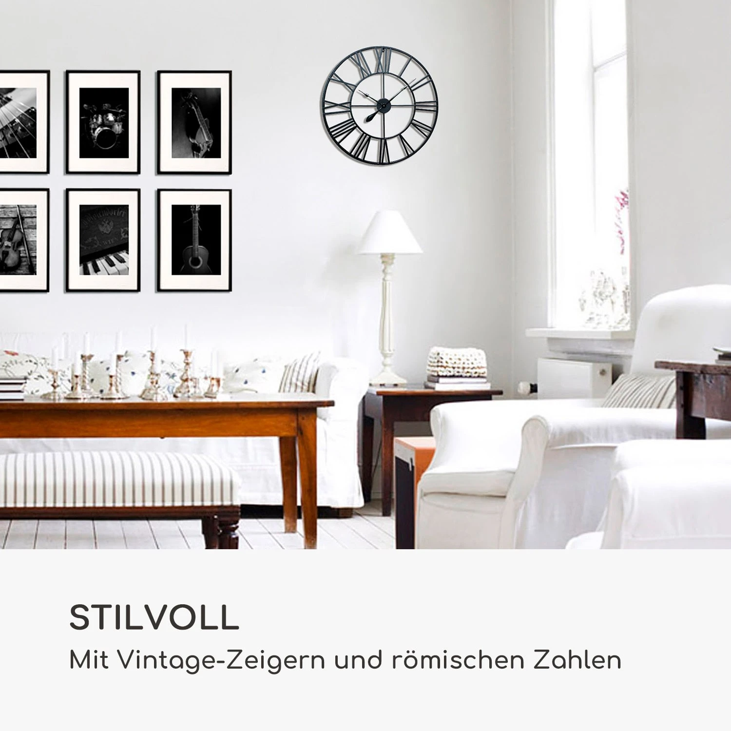Die Queensway Wanduhr von Casa Chic by blumfeldt mit römischen Zahlen verleiht jedem Interieur eine besonders wohnliche Atmosphäre. Der elegante Metallrahmen mit Vintage-Zeigern macht sie perfekt für jeden Raum, vom heimischen Wohnzimmer über Büros bis hin zum gemütlichen Café oder Restaurant. Die Kombination der leichten Metallzeiger und des hochwertigen Quarz-Uhrwerks ermöglichen eine genaue und stille Zeitmessung! Dank ausbleibender Tick-Geräusche ist die Uhr auch perfekt zur Nutzung im Schlafzimmer geeignet.