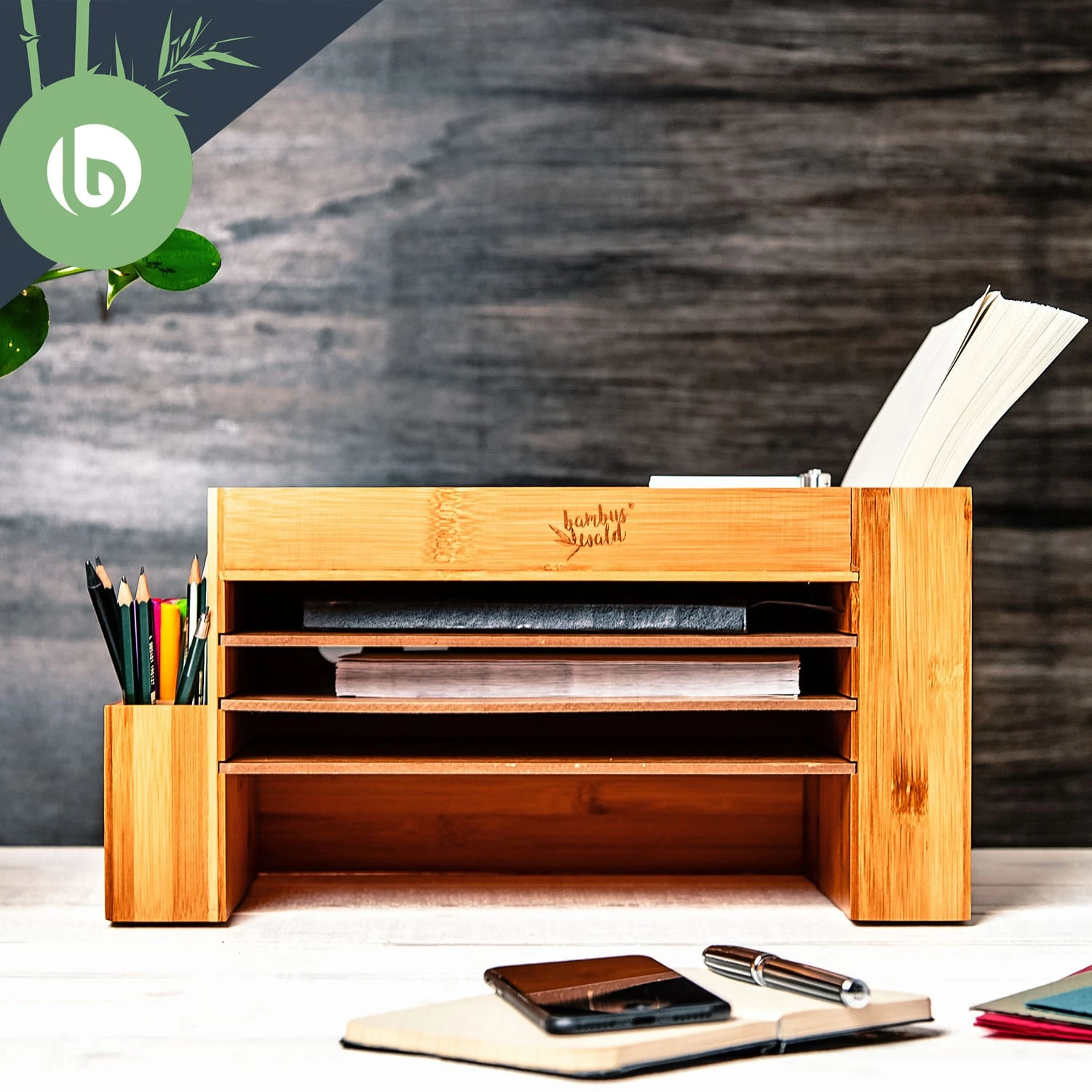 Dabei kann der Schreibtischorganizer mit vielen Fächern von blumfeldt noch mehr als nur Ordnung schaffen: Er ist ein moderner Hingucker und bringt natürlichen Glanz ins Büro. Durch die Herstellung aus reinem Bambus ist die Schreibtischbox zeitlos schön und nachhaltig.