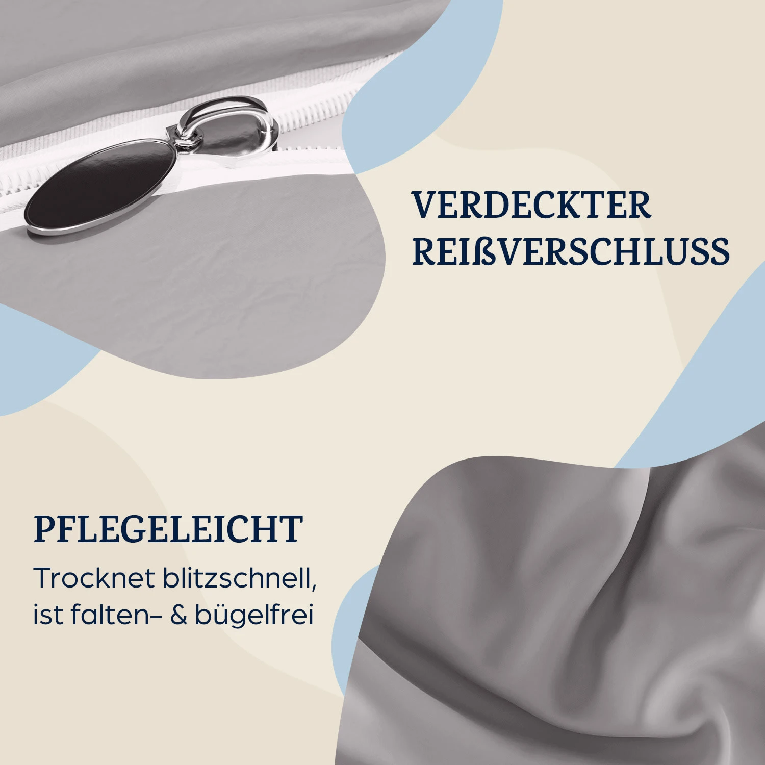 Du verbringst ein Drittel deines Lebens im Bett. Mach es dir gemütlich! Wir haben mit den Soft Wonder-Edition Kopfkissenbezügen die wohl weichsten und kuscheligsten Kissenbezüge entwickelt, die dein Bett und du bisher erlebt haben. Unsere Stoffexperten haben für eine außerordentlich angenehme Haptik den feinsten Faden der Welt gewählt: Die Supermikrofaser ist 10 x feiner als Seide. Aus ihrem Faden lässt sich ein Gewebe spinnen, dessen außergewöhnliche Eigenschaften selbst Textil-Profis überraschen: Durch die extrem hohe Fadendichte ist der Stoff noch weicher und atmungsaktiver als ägyptische Baumwolle der Luxus-Klasse. Dabei sind die Kopfkissenbezüge sehr pflegeleicht (bei 40° ohne Weichspüler waschen, trocknet innerhalb kurzer Zeit) und nahezu faltenfrei. Die sorgfältige Verarbeitung der Nähte und des Reißverschlusses sorgen zudem für eine hohe Lebensdauer. Natürlich sind die sleepwise Soft Wonder-Edition Kissenbezüge frei von Schadstoffen und ideal für Allergiker oder empfindliche Personen.