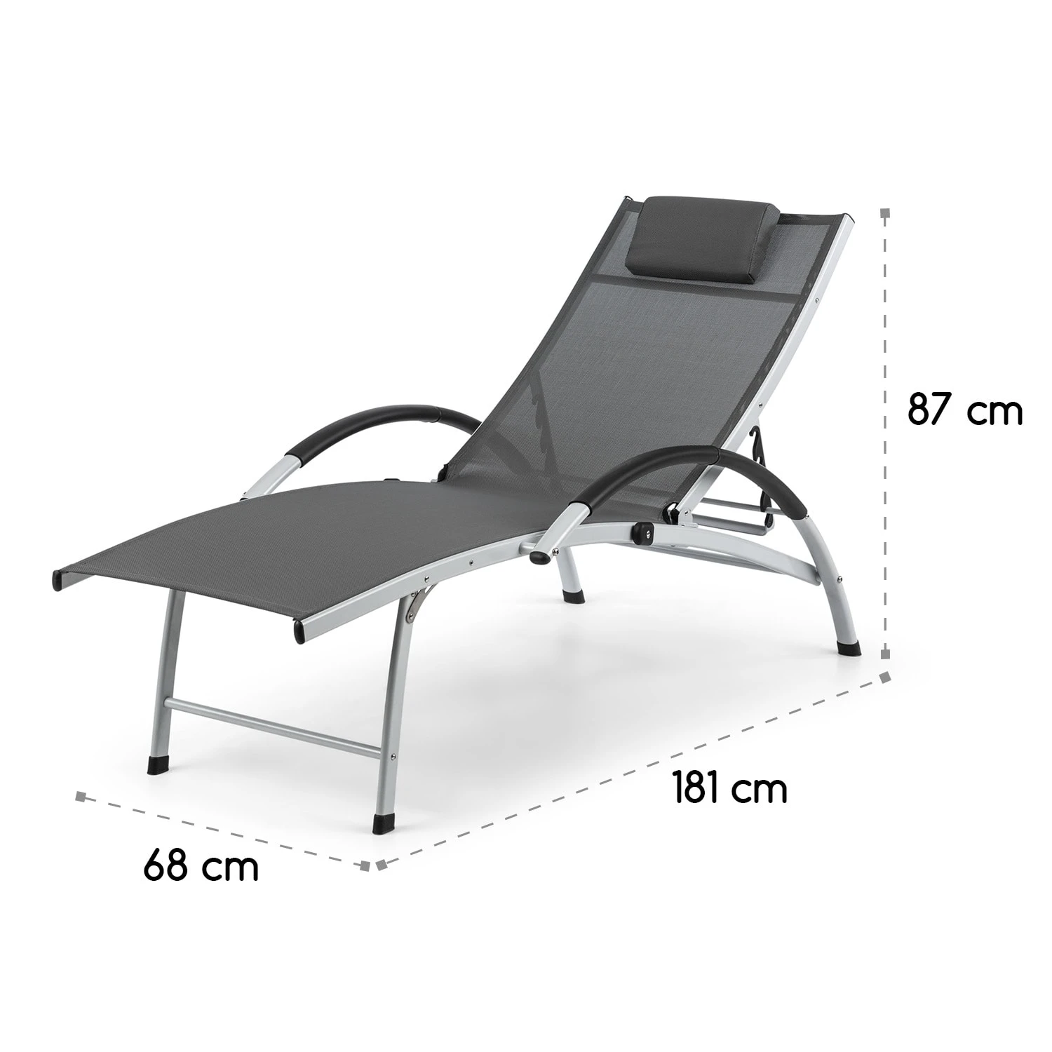 Der stabile Rahmen aus Aluminium ist nicht nur robust, er ist auch besonders leicht. Durch die Möglichkeit, die Sonnenliege besonders flach zusammenzuklappen, lässt sich das Leichtgewicht schnell überall verstauen und benötigt dabei besonders wenig Platz.