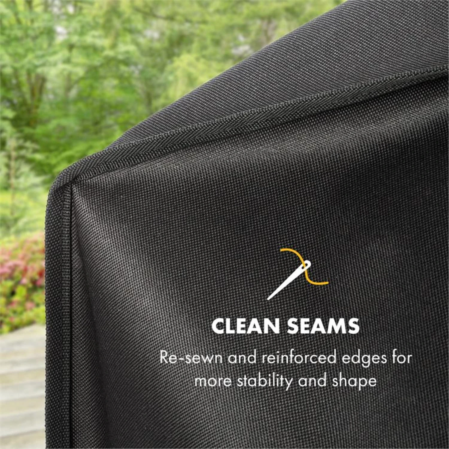Das Klarstein Tomahawk Witterungsschutz-Cover passt perfekt auf den gleichnamigen 4.1-Brenner-Gasgrill, sogar wenn dessen Seitentische ausgeklappt sind! Einfach überziehen und fertig, beschwerliches und zeitraubendes Umräumen und Einlagern entfallen in Zukunft komplett. Die extrem robuste Schutzhülle ist dabei aus extra schwerem 600D Canvas-Tuch gefertigt. Das ist nicht nur wasser- und reißfest, sondern dank der Materialmischung aus 30% Polyester und 70% PVC ganz einfach abwischbar. So kann der Grill in Zukunft direkt an seinem Einsatzort stehen bleiben, ist vor Wind und Wetter geschützt und mit nur wenigen Handgriffen direkt einsatzbereit.